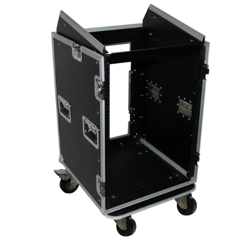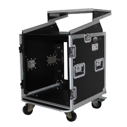 קייס ציוד קשיח 12U עם פתח עליון 10U למיקסר על גלגלים – עץ/אלומיניום לפרויקטי שטח