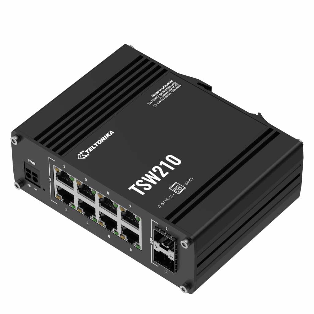 סוויץ’ תעשייתי מוקשח 8 פורטים בנוסף 2 פורטים SFP דגם TSW210 תוצרת TELTONIKA