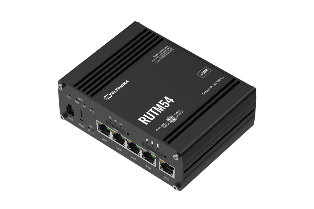 נתב (ראוטר) 5G תעשייתי RUTM54 – תוצרת Teltonika עם eSIM, 5× Ethernet ו-Wi-Fi