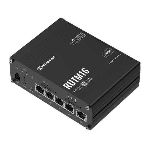 נתב (ראוטר) סלולרי תעשייתי RUTM16 – תוצרת Teltonika עם 4G LTE Cat 6, eSIM, Wi-Fi 5 ו-5× Gigabit Ethernet